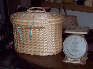 Nice finds! I love that scale! I think that basket would look great painted black then rubbed down. I can never find material at a GW, TS, or yard sale. I guess people around here like their fabric too much. Lol! It's a good thing I get mine so cheap at Hobby Lobby with my coupon and discount. I also love all things wooden... the tray and the box are neat! I know I've said it before but I really like your painted bowls inside the oblong bowl. They are prim wonderful!